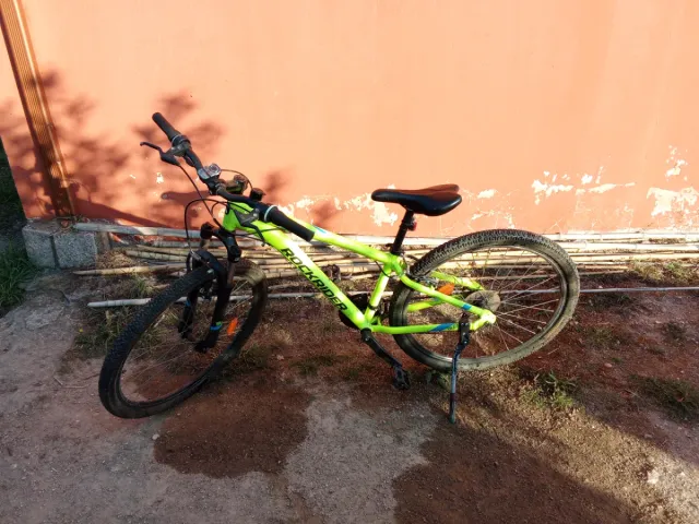 Detalles del productoBicicleta de montaña Rockrider en color verde brillante. Ideal para iniciarse en el ciclismo.