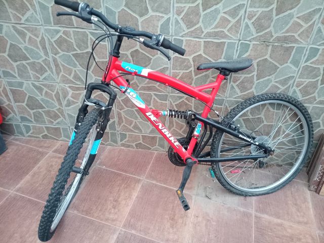 Bicicleta de montaña en color rojo, con muy poco uso. Hay que hacerle una revisión - Cuadro de aluminio. - Suspensión delantera y trasera. - Ruedas de 26 pulgadas.