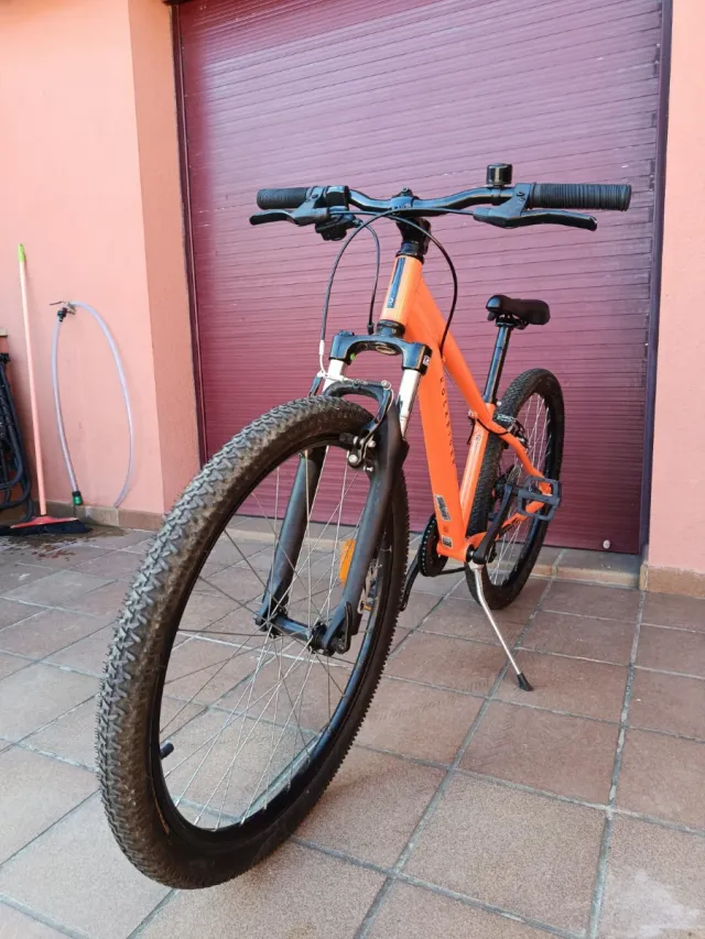 Bicicleta de montaña en color naranja, talla 10-14 años y rueda de 26 pulgadas, con caballete. En perfecto estado, usada muy pocas veces.