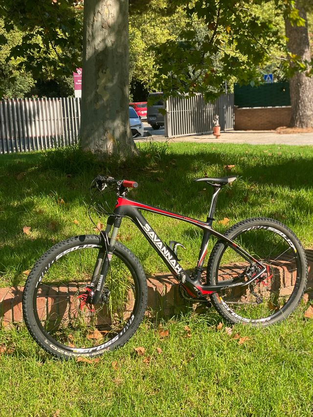 Detalles del productoBicicleta de montaña Savannah con cuadro de carbon, manillar y sillin de carbono. Vendo por falto de uso, esta como nueva.