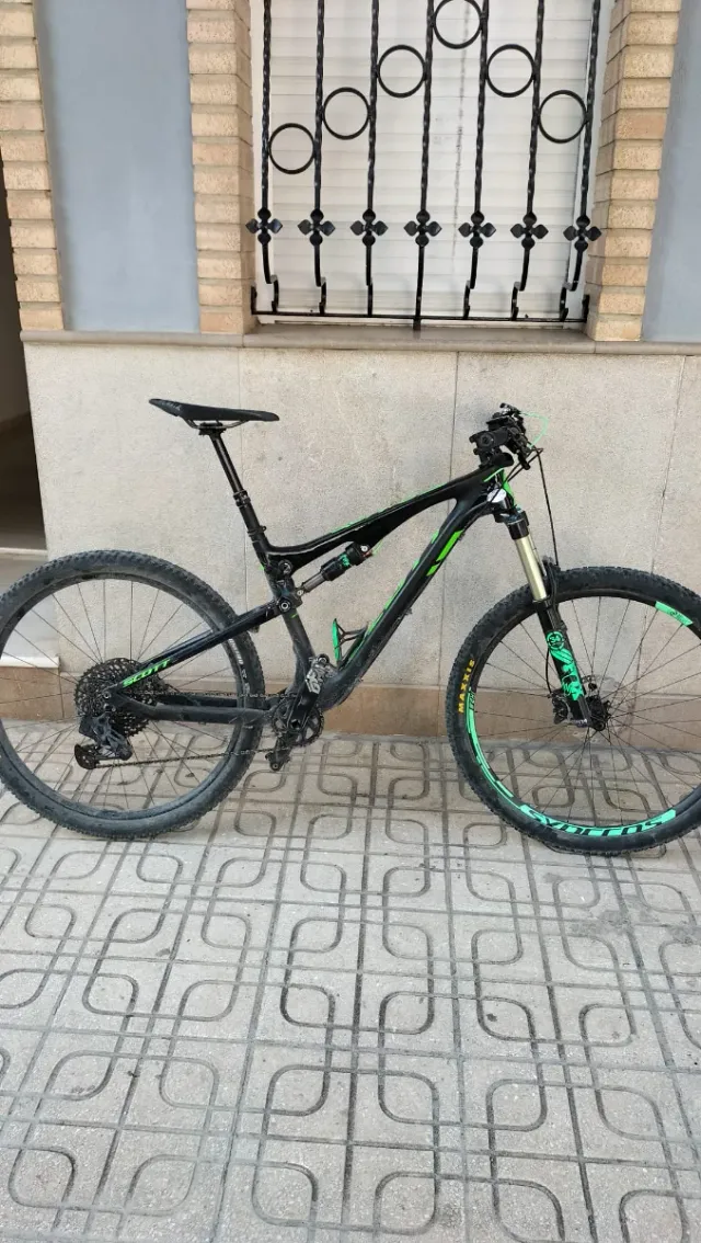Detalles del productoBicicleta de montaña Scott con doble suspensión, ideal para terrenos difíciles.