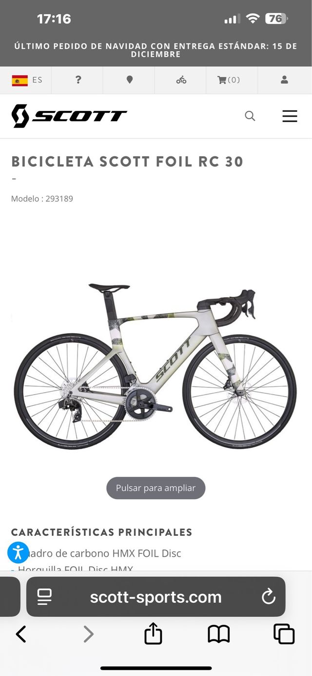 Detalles del productoBicicleta Scott Foil RC 30, talla L, a estrenar.