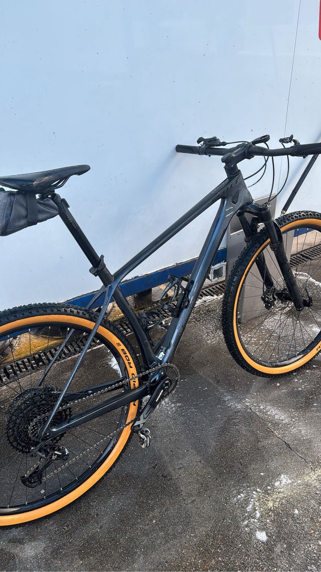 - Ruedas de 29 pulgadas con cubiertas color miel.