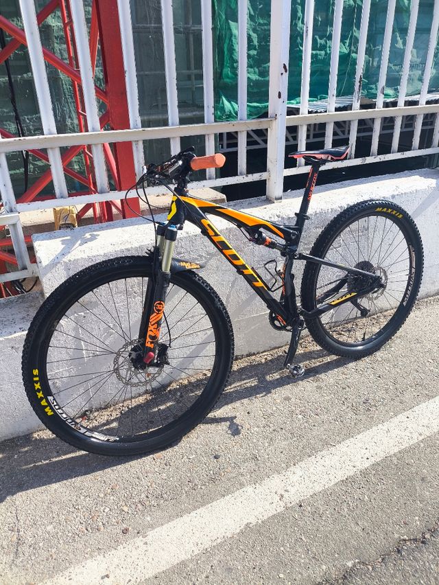 Detalles del productoBicicleta de montaña Scott Spark 940 con un diseño llamativo en negro y naranja.