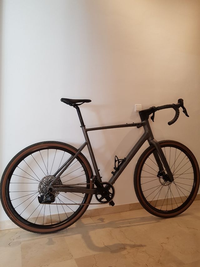 Detalles del productoNo negociable. Talla XL (58). Estado, nueva (julio 2023) Cables en interior, cuadro de aleación Speedster Gravel Disc, Horquilla Addict Gravel Disc HMF carbono, SRAM RIVAL AXS 1×12 velocidades, Desviador trasero SRAM RIVAL XPLR eTap AXS 12 Speed Electronic Shift System, palancas de cambio SRAM RIVAL eTap AXS HRD, bielas SRAM RIVAL, pedalier SRAM DUB PF ROAD 86.5, cassete SRAM XPLR XG125, frenos SRAM RIVAL eTap AXS HRD Shift Brake System Flatmount, disco de freno SRAM Paceline, Manillar Syncros Creston 31.8mm, potencia Syncros 31.8mm, tija Syncros 27.2/300mm, llantas Syncros Race X25 Disc 28, neumáticos Schwalbe G-ONE Bite 700x45C