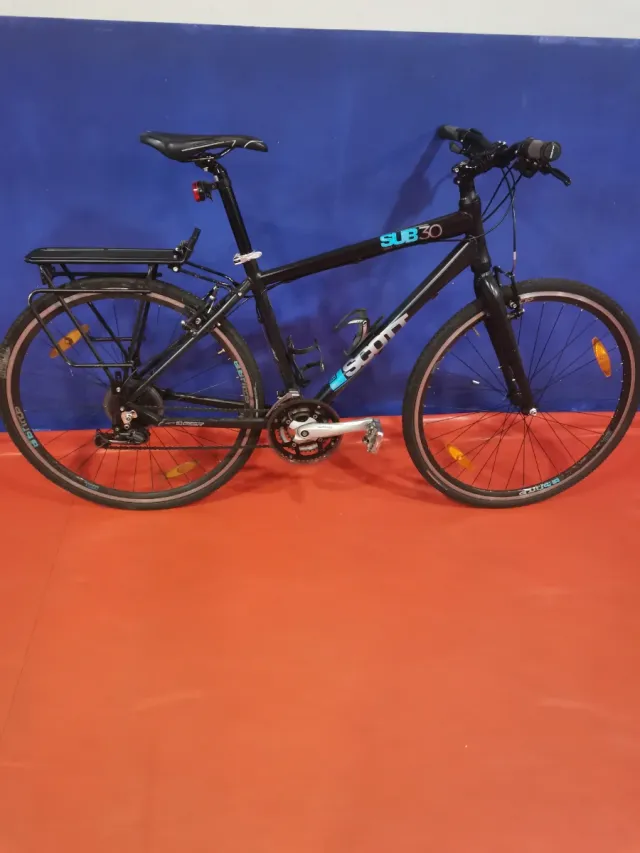 Bicicleta Scott SUB30 en color negro. Ideal para desplazamientos urbanos y rutas. - Cuadro de aluminio. - Ruedas de 700c. - Portaequipajes trasero. -