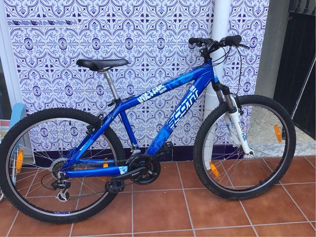 Detalles del productoBicicleta Scott Voltage Three 26" , con una Horquilla Scott Series y una transmisión Shimano Altus/Acera 3x7.Lleva unas manetas Tourney. Cambio de plato y piñones Shimano.Está nueva