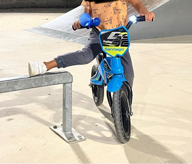 Detalles del productoBicicleta de aprendizaje de color azul, ideal para iniciarse en el mundo de las dos ruedas.