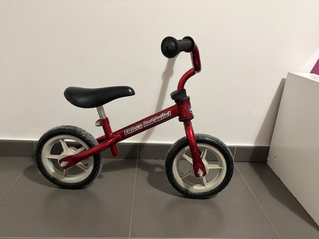 Bicicleta de equilibrio Chicco First Bike en color rojo. - Marco de metal rojo. - Asiento negro.