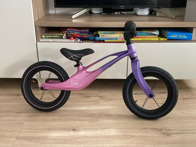 Detalles del productoPreciosa bicicleta sin pedales de la marca Lionelo, modelo Bart Air. Es ideal para que los más pequeños desarrollen su equilibrio y coordinación. Nueva costó alrededor de 90€. Se vende porque se le ha quedado pequeña. Algunas marcas de uso en los sitios más expuestos a los golpes.