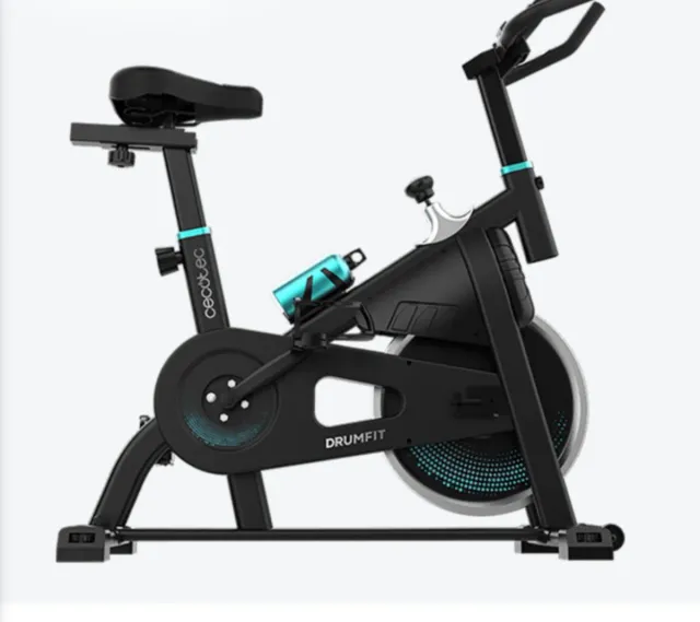 Detalles del productoBicicleta de spinning Cecotec Drumfit 10000 en color negro con detalles en azul.
