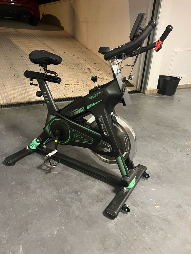 Detalles del productoBicicleta de spinning Cecotec Dynamic Bike en color negro y verde.