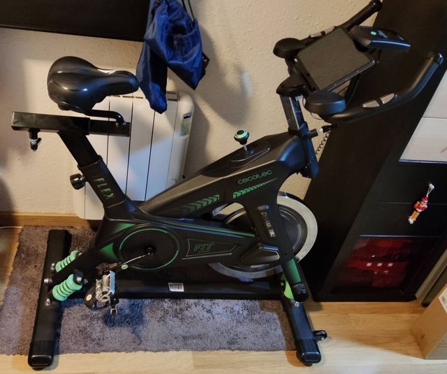 Detalles del productoBicicleta de spinning Cecotec UltraFlex 25 en color negro y verde.