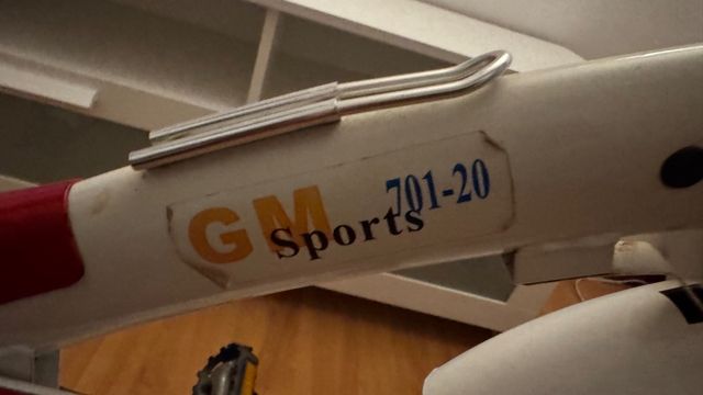 Bicicleta de spinning GM Sports modelo 701-20. Se vende por falta de uso. - Diseño en blanco y rojo. - Soporte metálico para manillar.