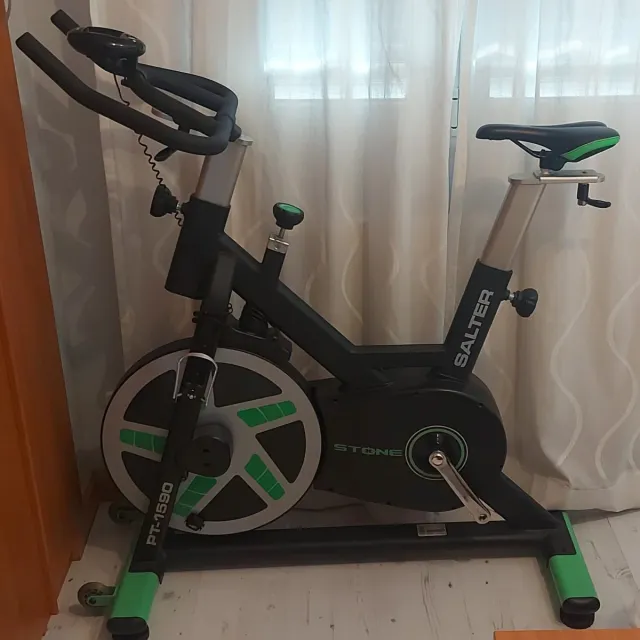 Detalles del productoBicicleta de spinning Salter modelo PT-1590 en color negro y verde. Ideal para entrenamientos en casa.