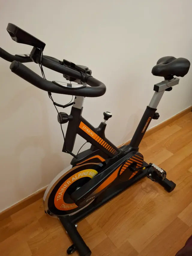 Detalles del productoBicicleta de spinning Trainer Alpine 60 en color negro y naranja. Diseñada para entrenamientos intensos en casa.