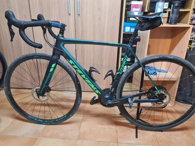 Detalles del productoBicicleta Stevens Izard de gravel en color verde con detalles en verde claro.