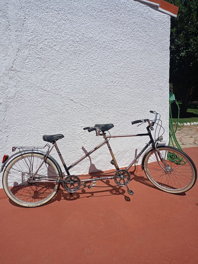Detalles del productoVendo tándem exclusivo americano procedente de colección sin uso solo exposición con las siguientes características doble cuadro mixto de paseo con parrilla trasera frenos