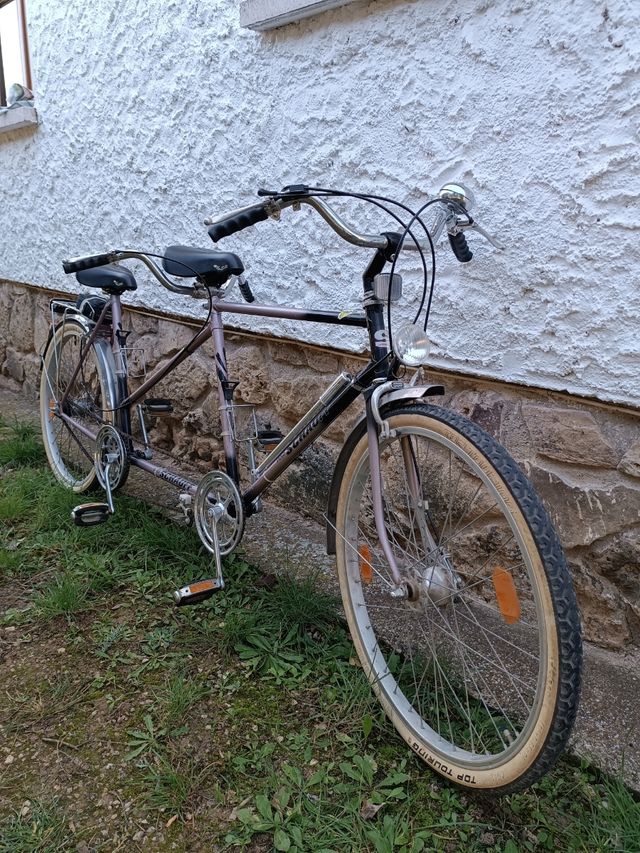 Detalles del productoBicicleta tándem clásica de la marca alemana Velo Schauff. Está en muy buenas condiciones y lista para disfrutar de paseos en pareja. Componentes originales.