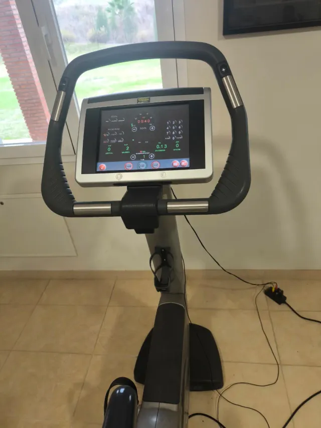 Detalles del productoBicicleta estática Technogym con pantalla táctil integrada y TV.