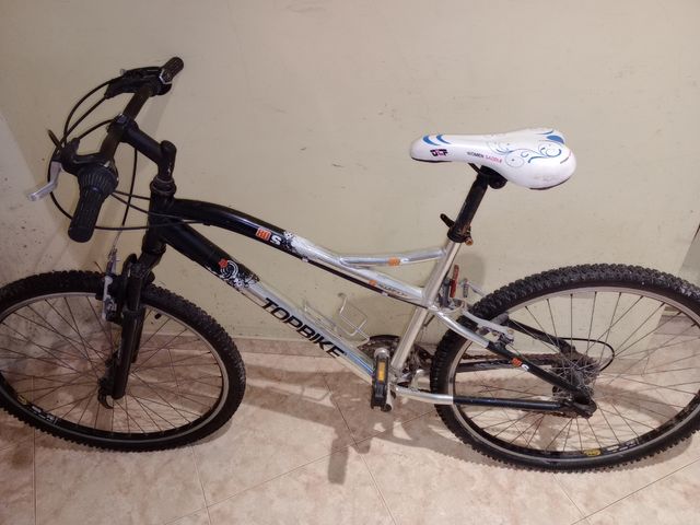 Detalles del productobicicleta 26 pulgadas MTB rockrider top bike 80 s,cambio en puño revoshit aluminio en color negro y plata,tija,cierre de tija y manillar aluminio,esta en muy buen estado