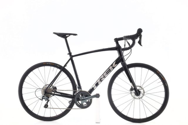 Detalles del productoImágenes reales | Garantía 1 año | Financiación desde 30,85€ / mes sin intereses | Envío Península 50€ | Bicicleta de carretera | Cuadro de Carbono | Talla 58 | Cambio: Shimano Tiagra | 11 velocidades | Cassette: 11-32-T | Mandos de cambio: Shimano Tiagra | Desviador: Shimano Tiagra | Bielas: Shimano Tiagra | Plato: 50-34-T | Potenciómetro: No | Frenos: Shimano Tiagra | Ruedas: Bontrager Paradigm | Potencia: Aluminio | Manillar: Aluminio | Tija: Carbono