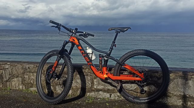 Detalles del productoBicicleta de montaña Trek Fuel Ex 9.8 GX con cuadro de carbono y suspensión doble.