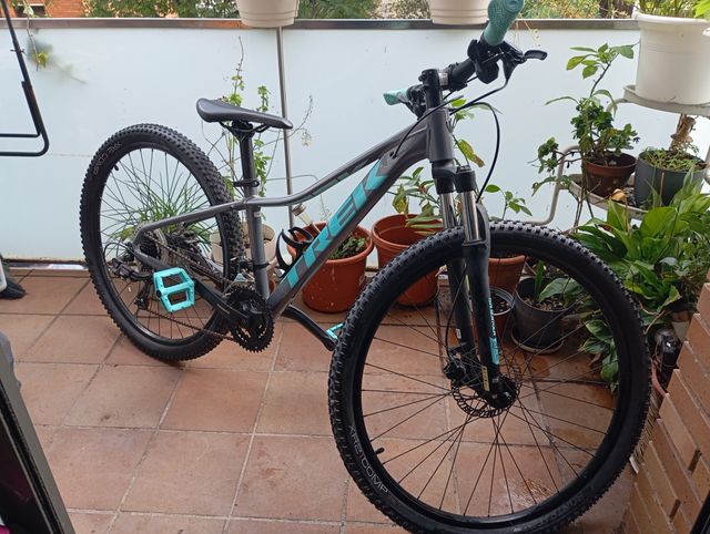 Bicicleta de cross country ligera, resistente y lista para la acción. En excelente estado (9/10). Cuadro de aluminio, pesa solo 15 kg. Transmisión Shimano Tourney 3x7, frenos de disco Tektro, llantas Bontrager XR2 27.5” (2.2) con rines Bontrager Connection. Componentes Bontrager en manillar, asiento y potencia. Perfecta para montaña o ciudad.