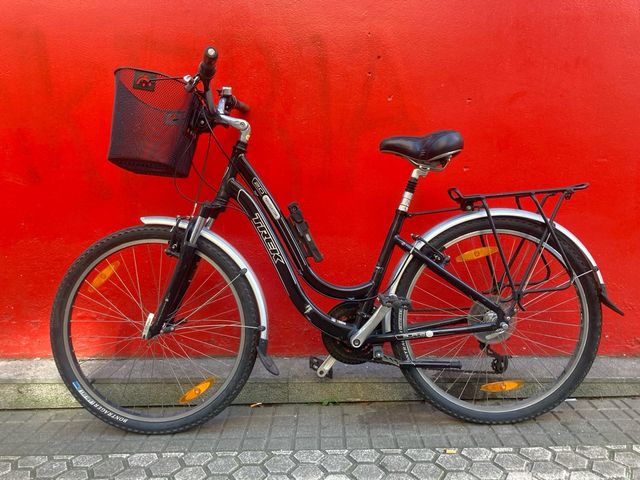 Detalles del productoBicicleta urbana Trek Navigator negro, ideal para paseos.