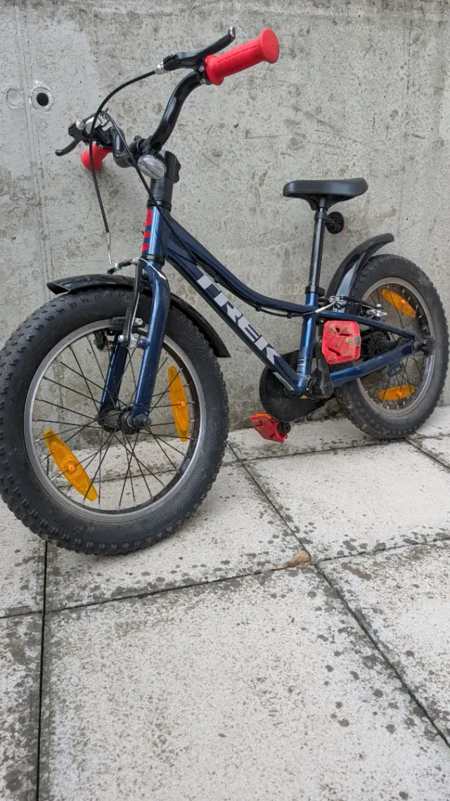 Detalles del productoBicicleta infantil Trek Precaliber de 16 pulgadas en color azul.