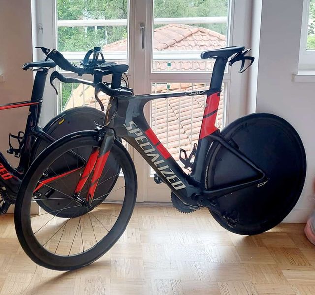 Detalles del productoBicicleta de triatlón Specialized Shiv, diseñada para competición.