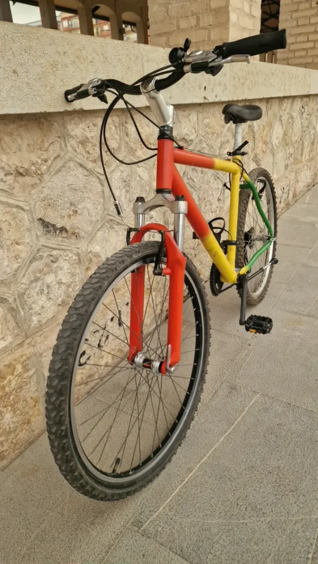 Bicicleta urbana diseñada para paseos cómodos. - Cuadro de bicicleta con colores vibrantes. - Ruedas todoterreno. - Manillar ergonómico.