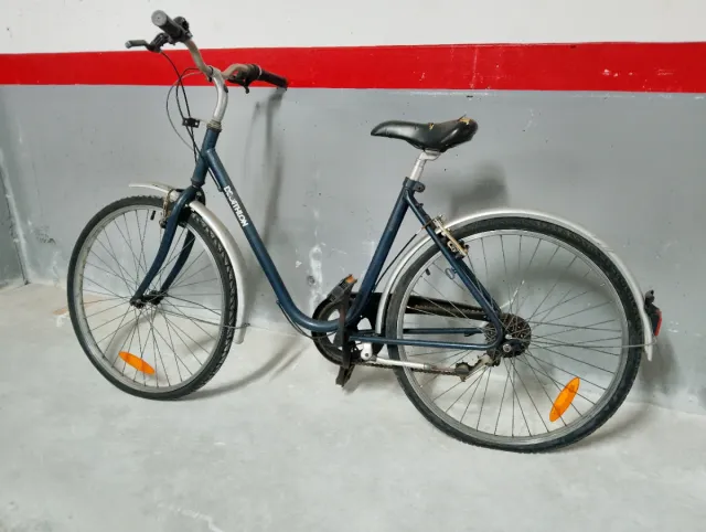 Detalles del productoBicicleta urbana de color azul, ideal para desplazamientos diarios.
