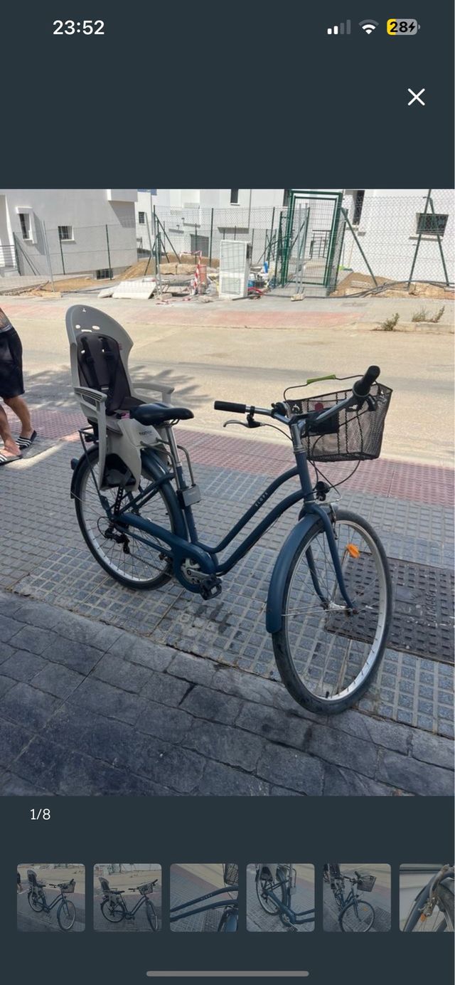 Detalles del productoBicicleta urbana Elops en color azul marino, ideal para desplazamientos diarios. Cuenta con una cesta delantera para llevar tus pertenencias.
