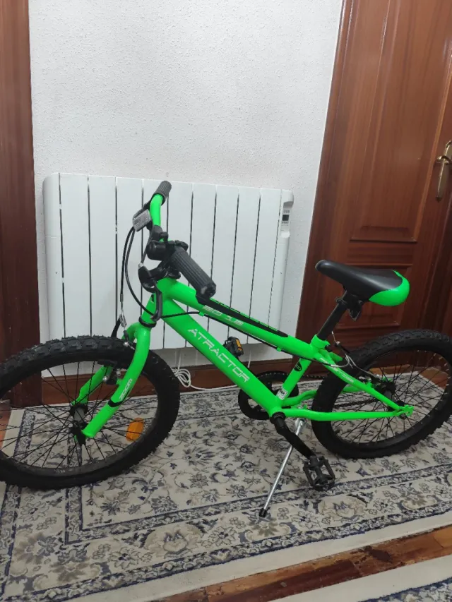 Bicicleta infantil de color verde, marca ATRACTOR. Se encuentra en un estado casi nuevo, con muy poco uso. - Ruedas de gran tamaño. - Diseño deportivo.