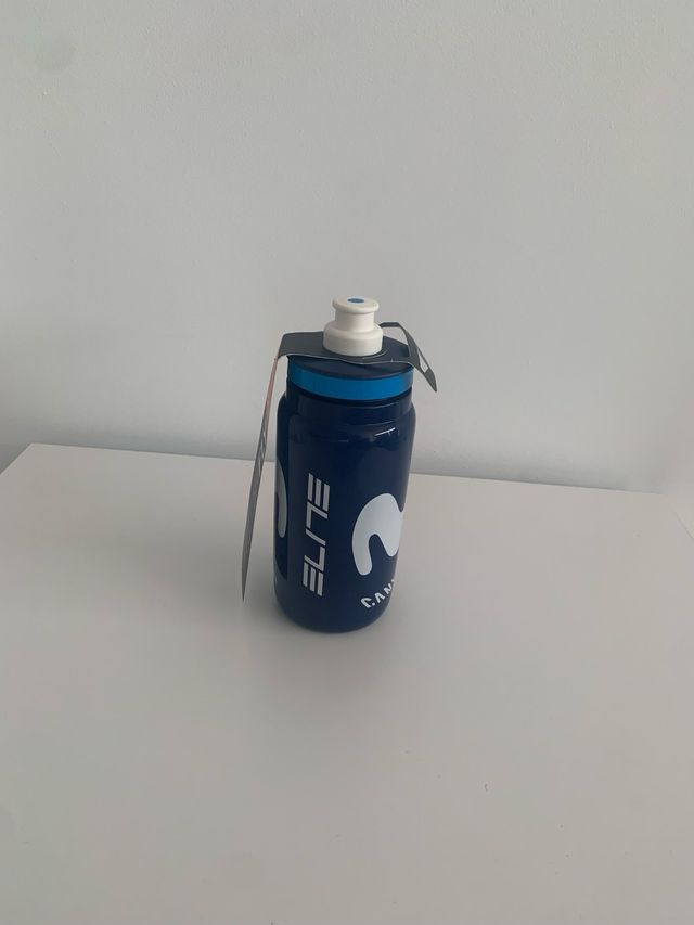 Bidón de ciclismo del equipo Movistar. - Color azul. - Diseño con logo del equipo. bicicleta bici movistar bidon ciclismo agua bebida elite
