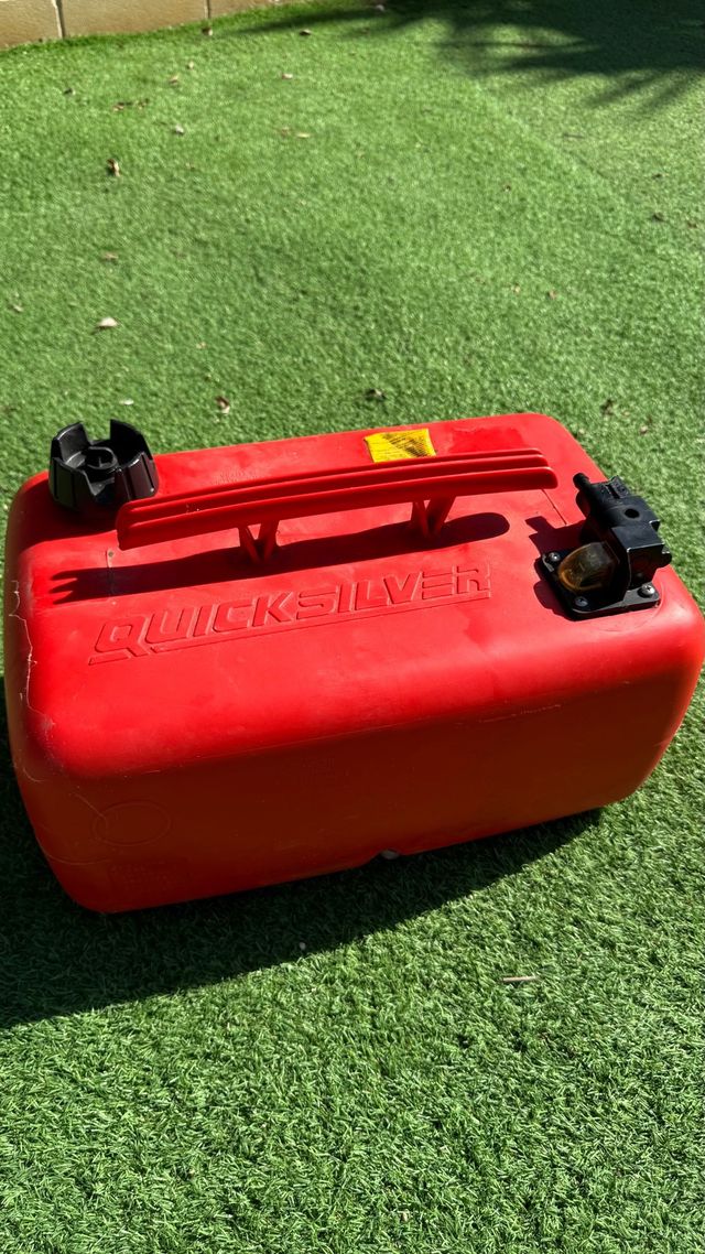 Detalles del productoBidón de gasolina de 25 litros de la marca Quicksilver, diseñado para embarcaciones.