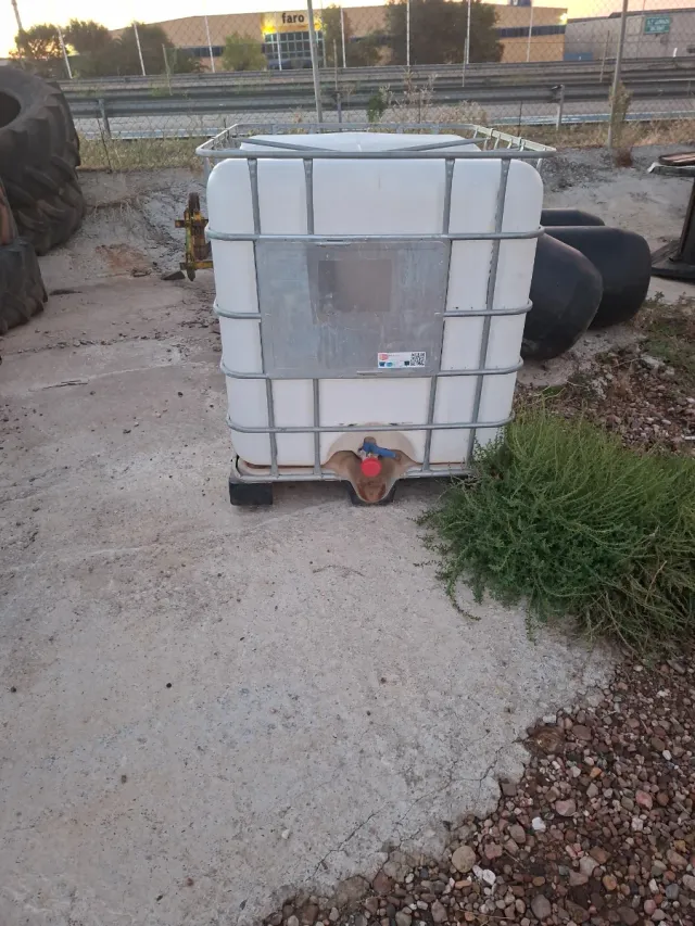 Bidón de gran capacidad para líquidos. - Capacidad de 1000 litros. - Estructura metálica. - Válvula de salida.