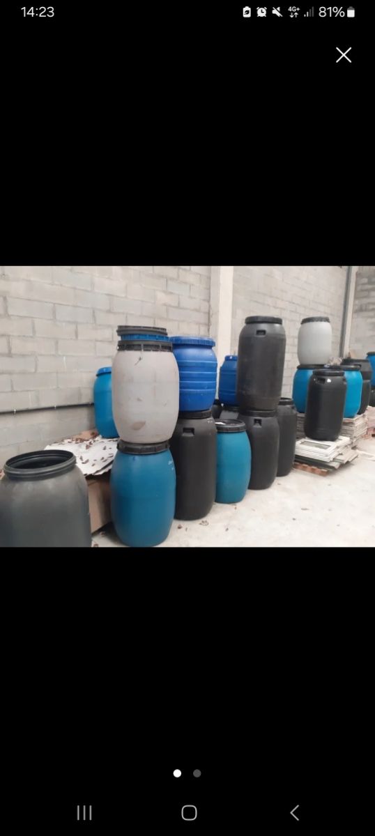 Bidón plástico varias medidas con tapa. Sobre 170/180 litros de capacidad