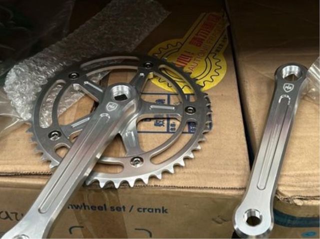 Juego de bielas de aluminio para bicicleta. - Material: Aluminio - Diseño ligero y resistente - Acabado plateado pulido - 46T