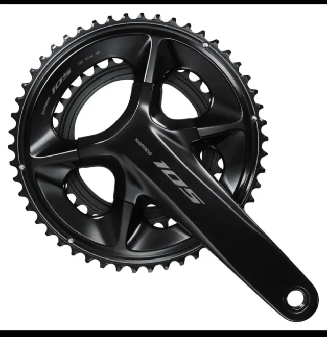 Bielas Shimano 105 en color negro. - Diseño deportivo y ligero. - Fabricadas en aluminio. - Compatibles con sistemas de 12 velocidades -largo 160mm