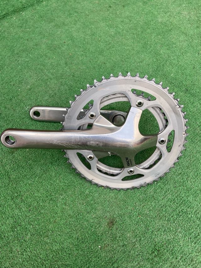 Juego de bielas Shimano 105 en buen estado. Se aprecian algunas marcas de uso. - Modelo Shimano 105. - Platos 52/39 - De 175mm