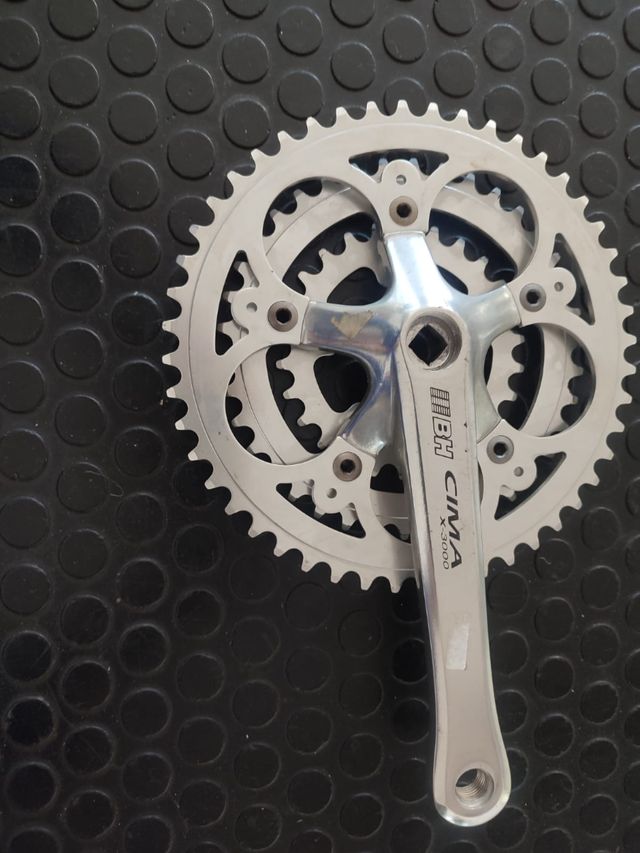 Juego de bielas y platos de bicicleta BH CIMA X-3000. - Material: Aluminio. - Color: Plateado. - Diseño de doble plato.
