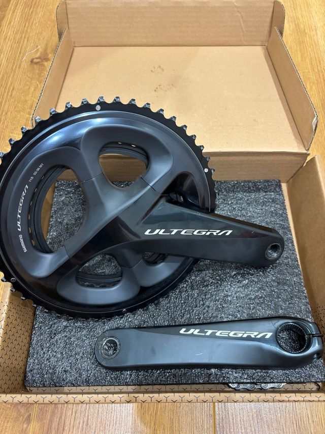 Detalles del productoJuego de bielas y platos Shimano Ultegra en color negro, con 500km, como nuevo. Diseñados para ciclismo de carretera.