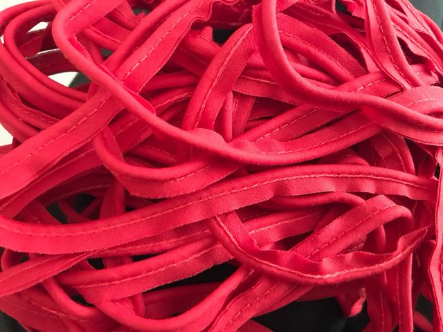 Detalles del producto12 metros. Bies vivo de color rojo con cuerda incorporada. ancho 10mm