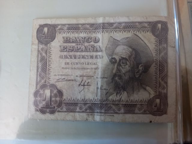 Detalles del productoBillete de una peseta del Banco de España, fechado el 19 de Noviembre de 1951.
