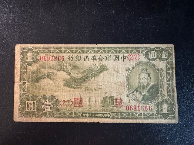 Detalles del productoBillete de 1 Yuan de la República de China, emitido en 1938 (año 27 de la República).