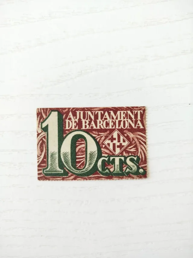 Billete de 10 céntimos del Ajuntament de Barcelona. Papel moneda 1937