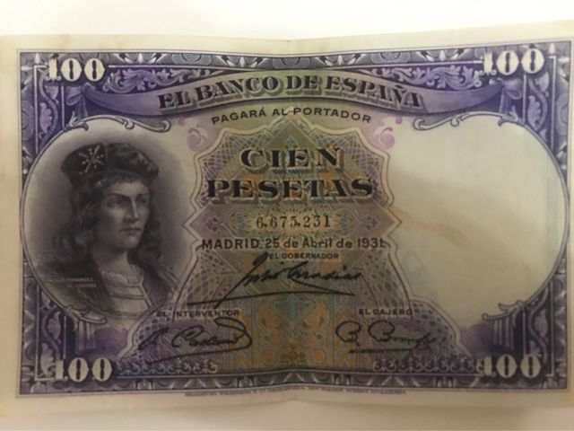 Billete antiguo 100 pts del año 31 en muy buen estado.