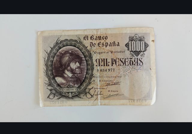 billete de mil pesetas (1000). Escudo de Carlos I. Madrid 21 de octubre 1940 buen estado (el de la imagen) sin restaurar serie 34977